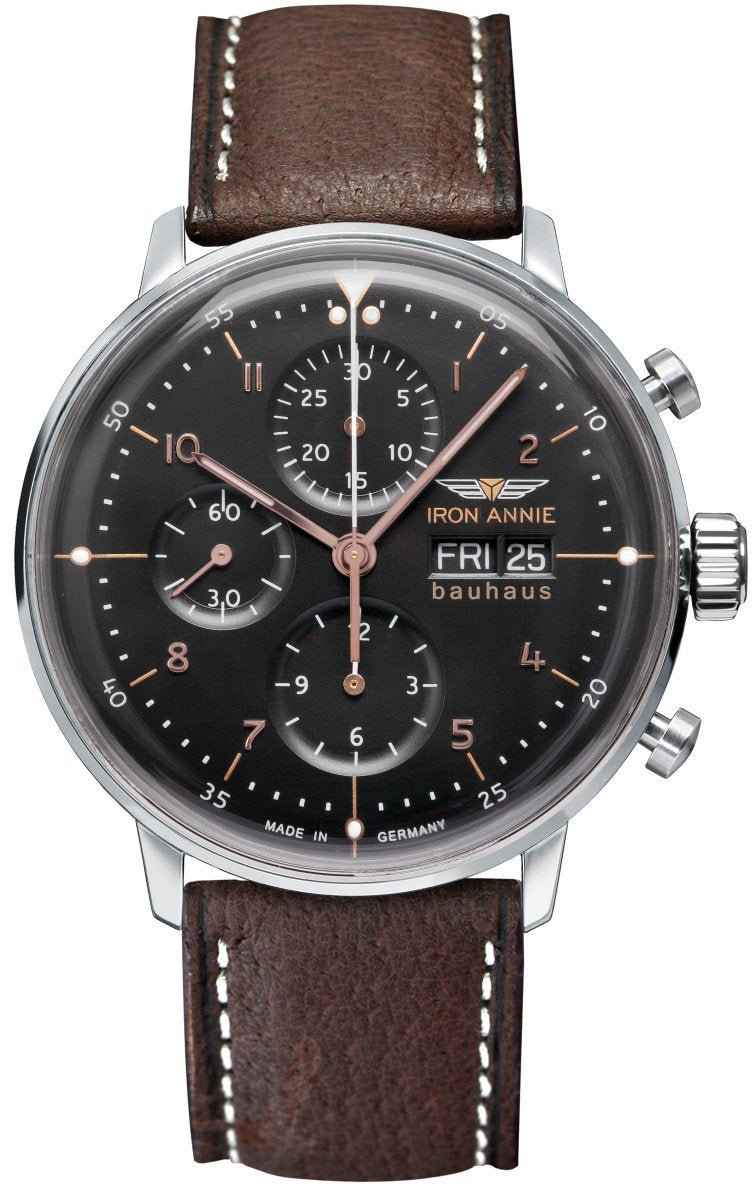 Iron Annie Watch Bauhaus Mens 50182. The IRON ANNIE watches collection is a reminiscence of the JU52 with the registration D-AQUI, the well known aircraft that was affectionately renamed IRON ANNIE by an American. Like their legendary role model, all IRON ANNIE watches stand for robustness, reliability, technical innovation, high quality design and striking design. The collection impresses with sophisticated, destinctive design at an excellent price performance ratio and a high product quality. All watches are made by highly qualified watch maker in Germany.