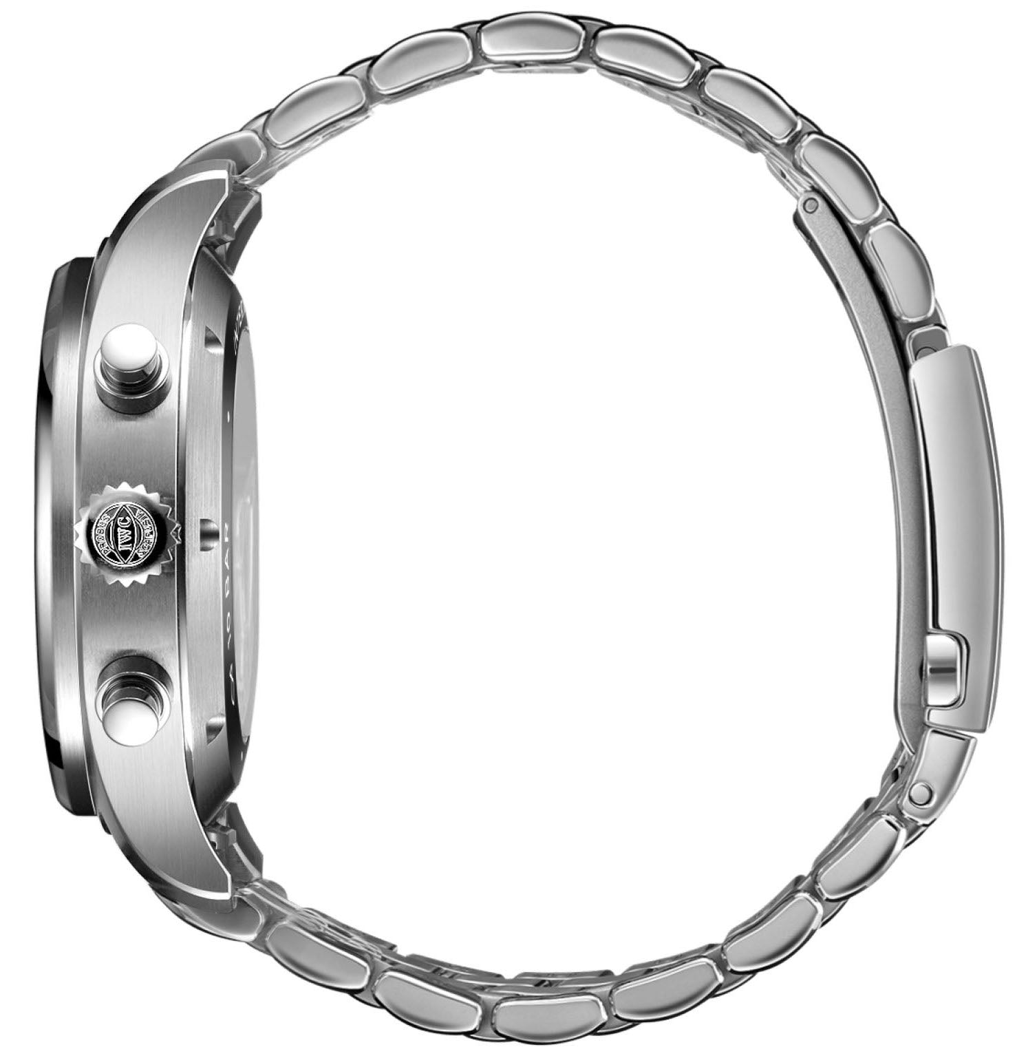 The Pilot’s Watch Chronograph reference IW378004 boasts 100 meters of water resistance and an exhibition caseback made from sapphire crystal, which exposes the movement as it performs. The Calibre 69385 comprises a total of 242 hand assembled components and promises a power reserve of 46 hours once fully wound. IWC experts equip the watch with a stainless steel bracelet and a folding clasp engraved with the IWC logo.