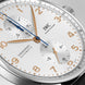 IWC Portugieser chronographs are some of the Maison’s most popular and sought after models in its entire catalogue. This model is characterized by its bicompax dial layout with sub counters positioned on a north south axis against a silver plated backdrop. The counters which provide chronograph minutes and seconds are finished in rose gold trimmings, including the delicate Arabic numerals placed around the hour track.