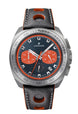 By combining historical design with contemporary technical prowess, Junghans have created a truly extraordinary Chronoscope watch. Housed within the stainless steel 43mm case is quartz movement J645.83 that offers a stop function with 1/5 second, a date feature and a 24 hour display. This Junghans 1972 Chronoscope watch also boasts appropriate scratch resistant sapphire crystal glass that sits above a stunning anthracite grey sunray brushed dial with luminous set hands. To complete the look, a black calfskin leather strap is added with sporty orange detailing and a stainless steel buckle.