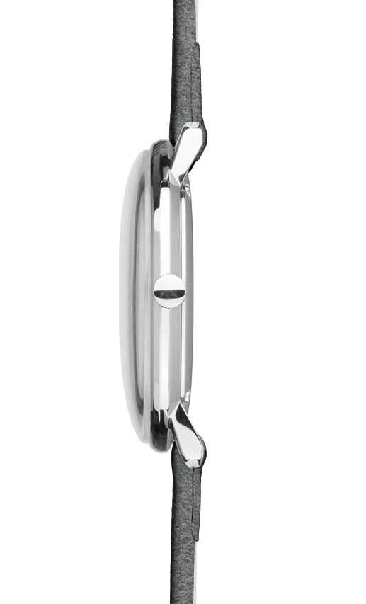 The sleek stainless steel case of this Junghans Max Bill Damen watch measures to a comfortable 32.7mm in width and 6.9mm in height and housed within the steel is the quartz J643.29 movement. The timepiece also boasts an appropriate convex hard Plexiglass with Sicralan coating that sits above a stunning polished grey dial set with a minute track and luminous hands. To complete the look, a grey leather felt strap and stainless steel buckle is added.