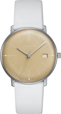The perfectly sized 32.7mm wide and 6.9mm thick stainless steel case lies flat and comfortable against the wrist while housing the J643.29 quartz movement which promises optimal reliability and precision. The Junghans Max Bill Ladies watch is completed by a gorgeous white calfskin strap and stainless steel buckle for a completely unmissable and contemporary finish.