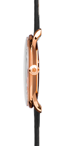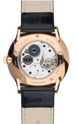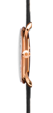 The sleek gold PVD coated stainless steel case of this Meister Handaufzug watch measures to a comfortable 37.7mm in width and 7.3mm in height and comes fitted with a sophisticated black leather strap and a matching gold PVD pin buckle. Housed within the case is the manual winding J815.1 movement, a German made calibre which equips the piece with hour and minute hands, a subsidiary seconds dial at 6 o clock and a power reserve of 42 hours. The movement can also be seen through the stunning exhibition case back where you can see some of the 17 jewels within its construction. This unisex Junghans Meister Handaufzug watch continues to impress with convex hard plexiglass with coating for enhanced scratch resistance, 30 metre water resistant case and a matte silver plated dial decorated with gold PVD hour and minute hands.