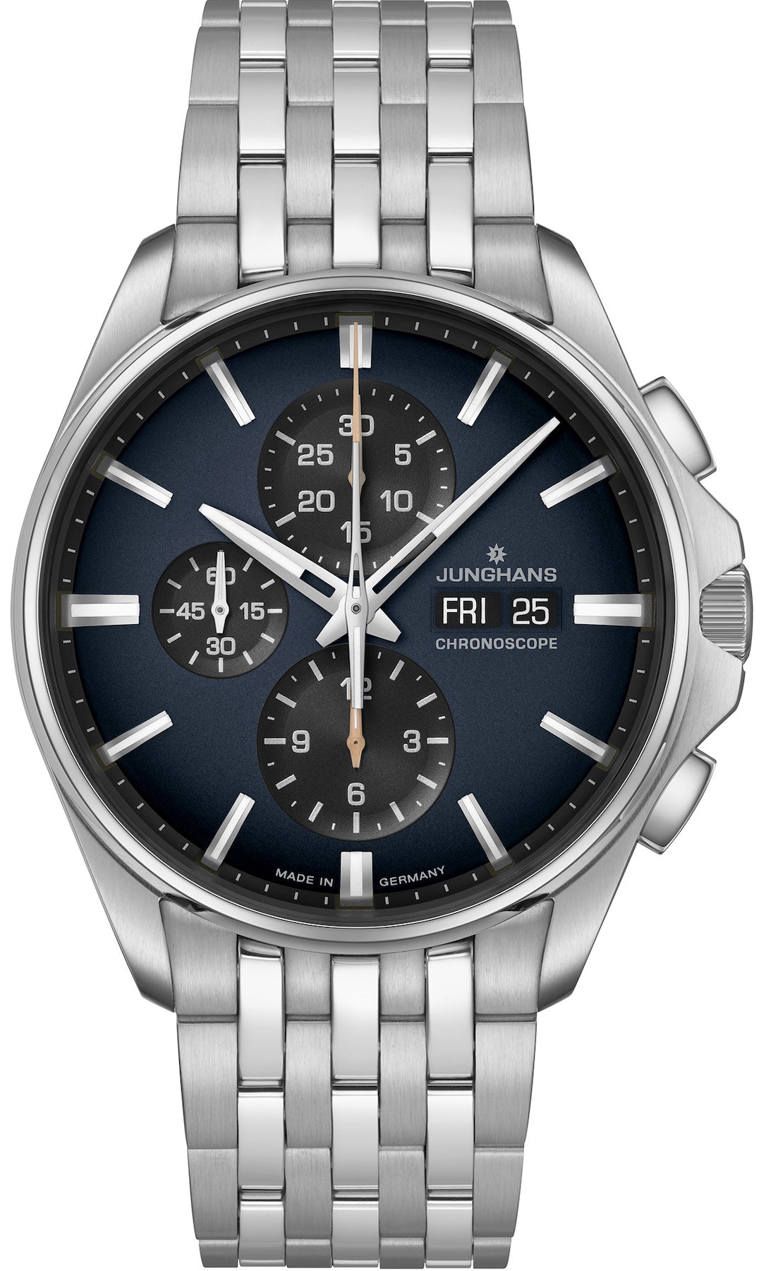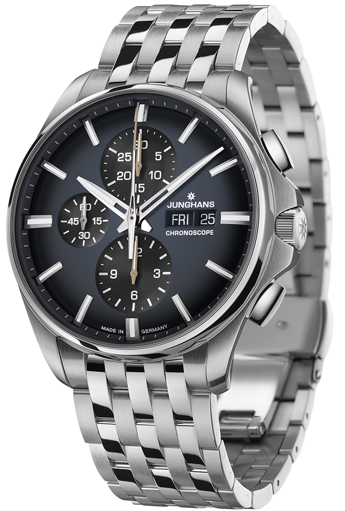 Junghans Watch Meister S Chronoscope 27/4228.45. Since the 1930s the finest watches of the company have borne the Meister appellation. They continue to feature a skilful blend of the fascination with watchmaking and aesthetic design.