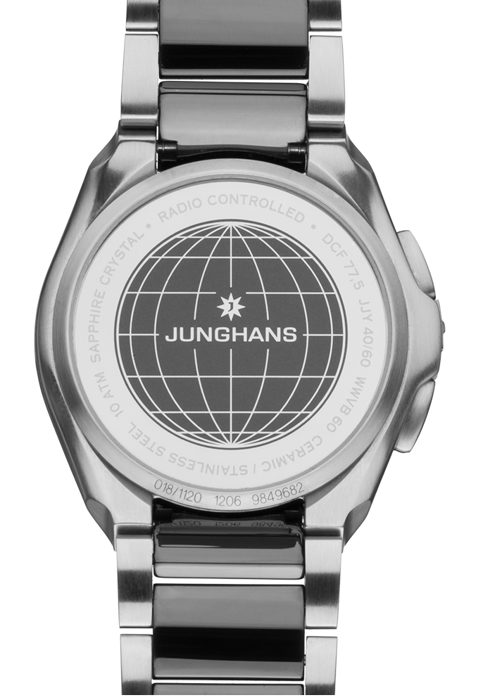 This breathtaking Junghans Spektrum Mega Solar watch combines the latest technology of radio controlled solar movements with a lightweight stainless steel and ceramic design. The multi frequency radio controlled solar J615.84 calibre housed within this watch is completely independent of limited energy resources and provides exact timekeeping on three continents using only the power of sunlight. The German made watch movement also boasts a power reserve of up to 21 months, a big date window at 6 o clock and sleep mode after 72 hours.