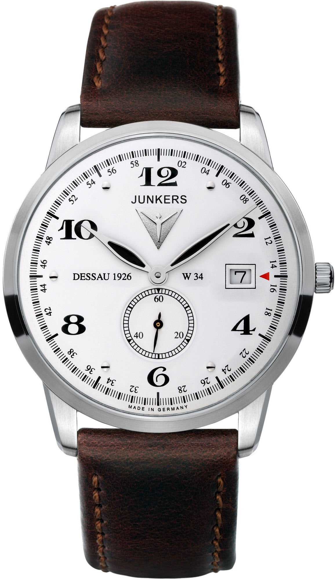 Junkers Watch Dessau 1926 Flatline Mens 63341. Junkers watches impress with their historical background to the legendary airplanes. They bring an exciting era of aircraft history back to life. Like the airplanes, thier watches stand for robustness, longevity and striking design. Every glance at a watch within our collection conveys the fascination of flying.