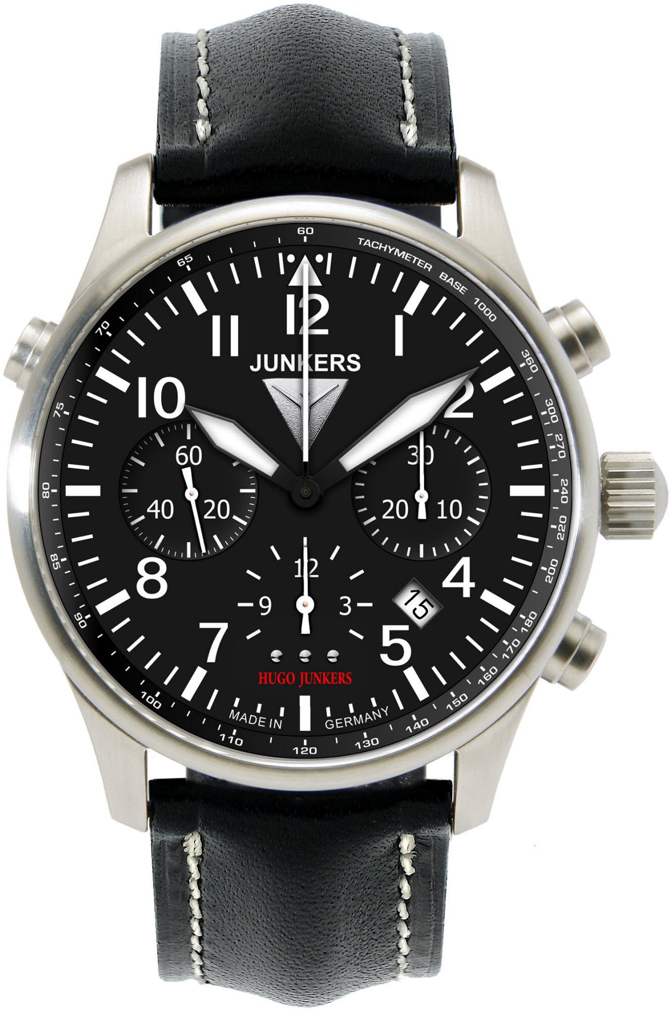 Junkers Watch Hugo Junkers Chronometer Glashuette. Since Junkers watches refer to the legendary corrugated sheet aircrafs, they also fill with enthusiasm. They bring a thrilling era of aircraft history alive and like their role model they represent robustness, persistence and significant design. Every glance at a Junkers watch shows the fascination of flying again. Supplier Model Number 6626-2