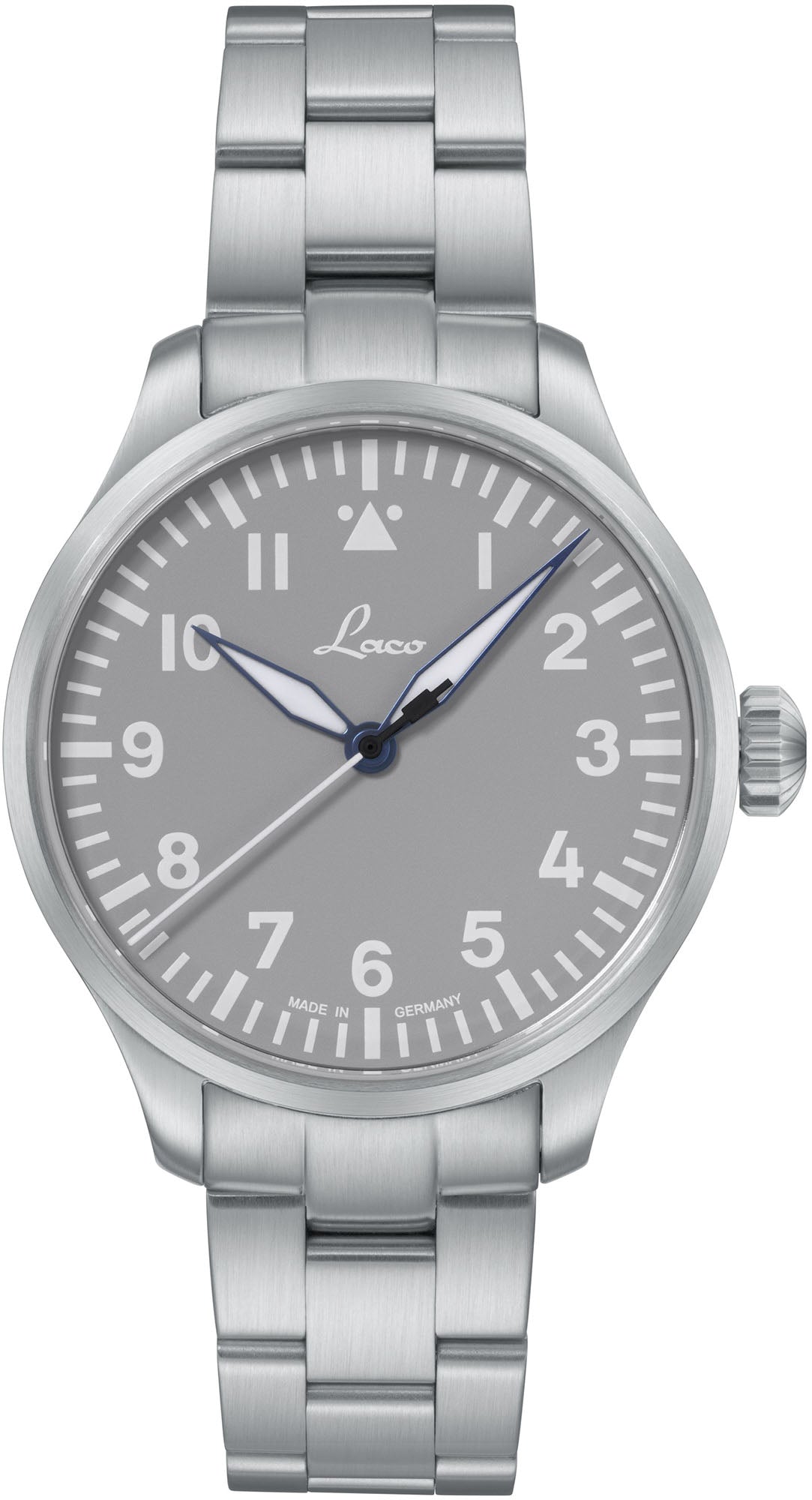 Laco Watch Flieger Basic Augsburg Grau 39 Bracelet 862161.MB. Characterised by the classic business colour grey, these timepieces are perfect for a clean appearance, as the colour is considered sophisticated and timeless. In current fashion, grey is often the new black, as it is not a strong contrast but an ideal complement to many colours. The design of the dials is based on the companies classic pilot watches.