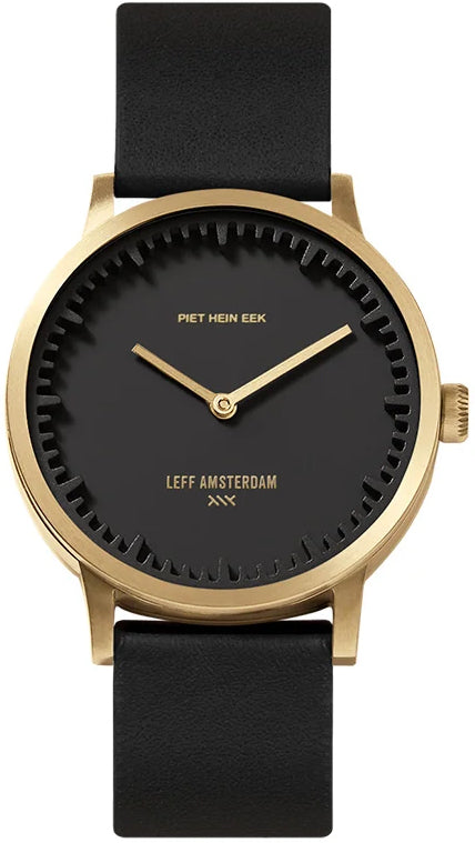 LEFF Amsterdam Watch Tube T32 LT74513. For the design of the Tube watch LEFF Amsterdam teamed up with Dutch Designer Piet Hein Eek. Piets unparalleled vision on design and LEFF amsterdams raw, industrial and sophisticated approach, came together in an amazing collection of refined yet tough watches. The design of the Tube watch has an iconic ring that functions as the clocks face. Therefore, you can recognize every LEFF amsterdam watch by this unique characteristic.