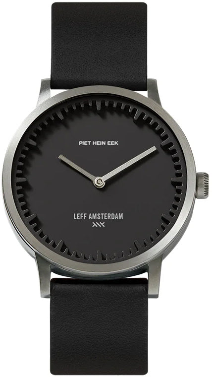 LEFF Amsterdam Watch Tube T32 LT74713. For the design of the Tube watch LEFF Amsterdam teamed up with Dutch Designer Piet Hein Eek. Piets unparalleled vision on design and LEFF amsterdams raw, industrial and sophisticated approach, came together in an amazing collection of refined yet tough watches. The design of the Tube watch has an iconic ring that functions as the clocks face. Therefore, you can recognize every LEFF amsterdam watch by this unique characteristic.