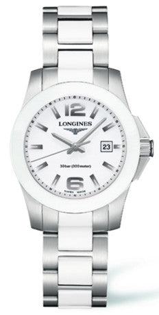 Longines Watch Conquest. Longines Watches Conquest is the quintessential expression of the brand's sporting elegance. This exceptional material combines timeless glamour with novel technical features. A subtle blend of performance and elegance, the Longines Conquest includes technical features that meet the requirements of the most demanding sportsmen and women. Both sober and sophisticated, these models are guaranteed to catch the eye at the most fashionable soires as well as in the stands of prestigious horse races.