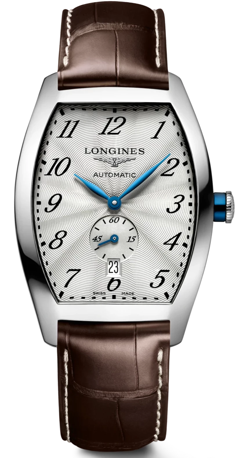 Inspired by the roaring 1920’s and its rapid changes in fashion and art, the Longines Evidenza watch collection represents the new found freedom that was felt during this time. The striking curved rectangular shaped case moulds elegantly to the wrist and finds the perfect balance between an everyday watch and a dress watch.