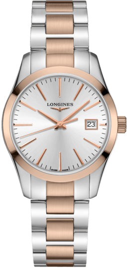 This Longines Conquest Classic watch for women has been beautifully designed to be your plus one to all the world’s most prestigious events. It’s breathtaking stainless steel case, smooth 18 carat rose gold bezel and silver sunray dial makes it the perfect centrepiece to your outfit while the Swiss quartz movement provides only the best in precision and performance. The Longines Conquest Classic watch is currently the Official Watch of many sporting events around the world including equestrian sports, alpine skiing and gymnastics, and this particular ladies watch is here to accompany you to your own.