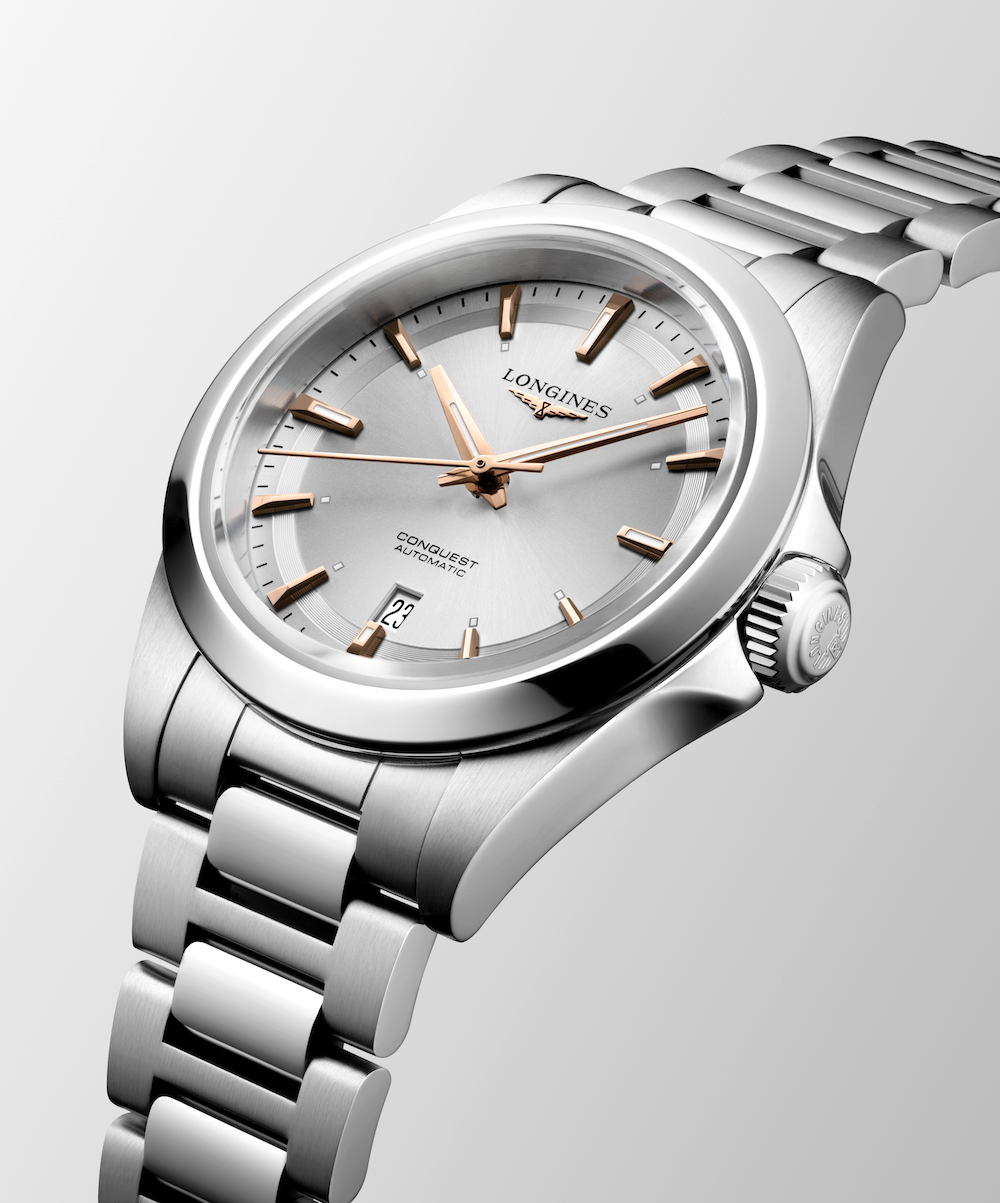 Longines Watch Conquest L3.320.4.72.6. Without sacrificing elegance, the Conquest line perpetuates the spirit of conquest of all those who have dared to go further than others in their quest for new horizons. The same spirit has been behind the models in the Conquest collection since 1954. Each watch contains a subtle fusion of performance and elegance, including the most demanding technical features.