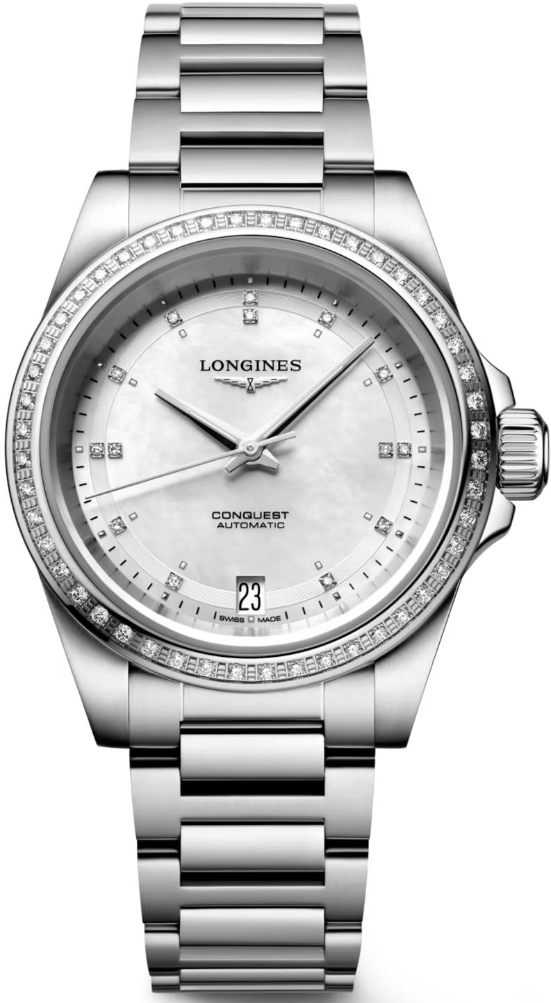 Longines Watch Conquest Ladies L3.430.0.87.6. Without sacrificing elegance, the Conquest line perpetuates the spirit of conquest of all those who have dared to go further than others in their quest for new horizons. The same spirit has been behind the models in the Conquest collection since 1954. Each watch contains a subtle fusion of performance and elegance, including the most demanding technical features.
