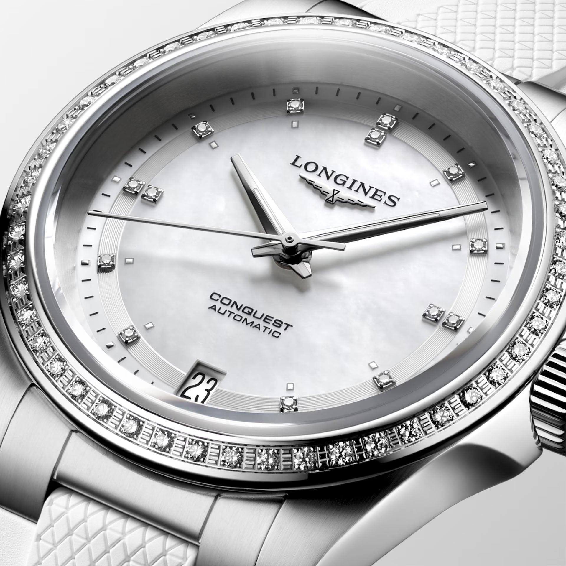 Longines Watch Conquest L3.430.0.87.9. Without sacrificing elegance, the Conquest line perpetuates the spirit of conquest of all those who have dared to go further than others in their quest for new horizons. The same spirit has been behind the models in the Conquest collection since 1954. Each watch contains a subtle fusion of performance and elegance, including the most demanding technical features.