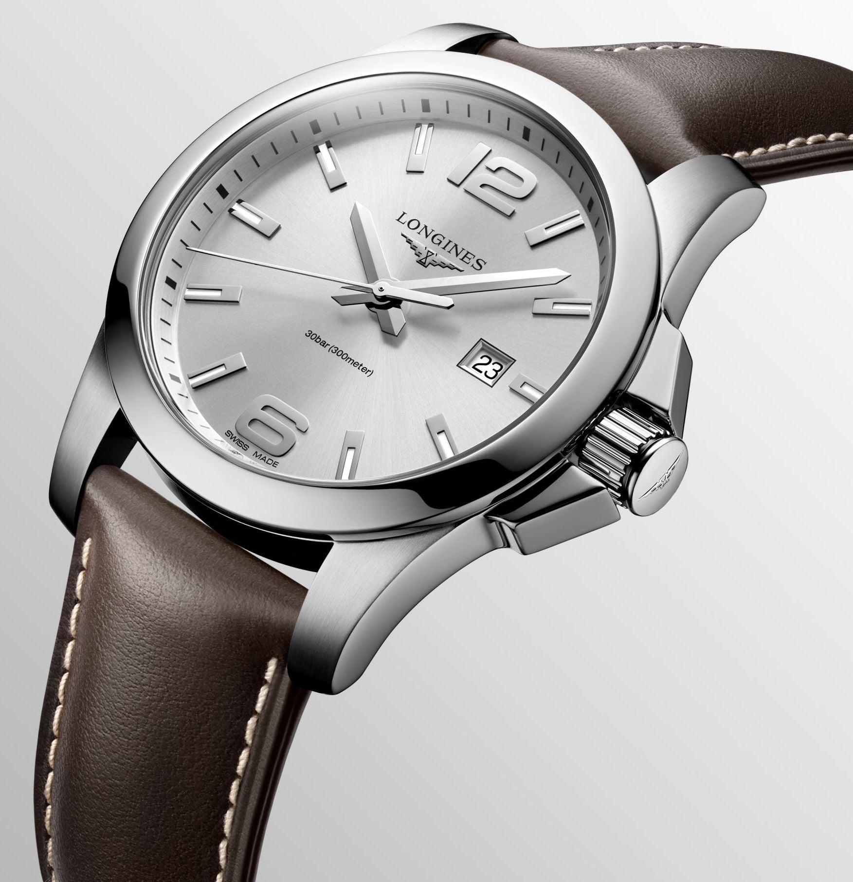 Longines Watch Conquest Mens L3.760.4.76.5. The Longines Conquest watch collection is a perfect example of the sporting elegance the brand has become so famous for. Through the combination of a Swiss automatic movement, cabochon crown and finely detailed dial, this Longines Conquest watch makes a fashionable accessory as well as a highly reliable timekeeping instrument.