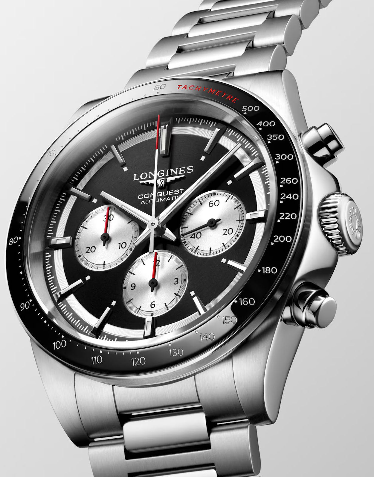 Longines Watch Conquest Chronograph L3.835.4.52.6. Without sacrificing elegance, the Conquest line perpetuates the spirit of conquest of all those who have dared to go further than others in their quest for new horizons. The same spirit has been behind the models in the Conquest collection since 1954. Each watch contains a subtle fusion of performance and elegance, including the most demanding technical features.