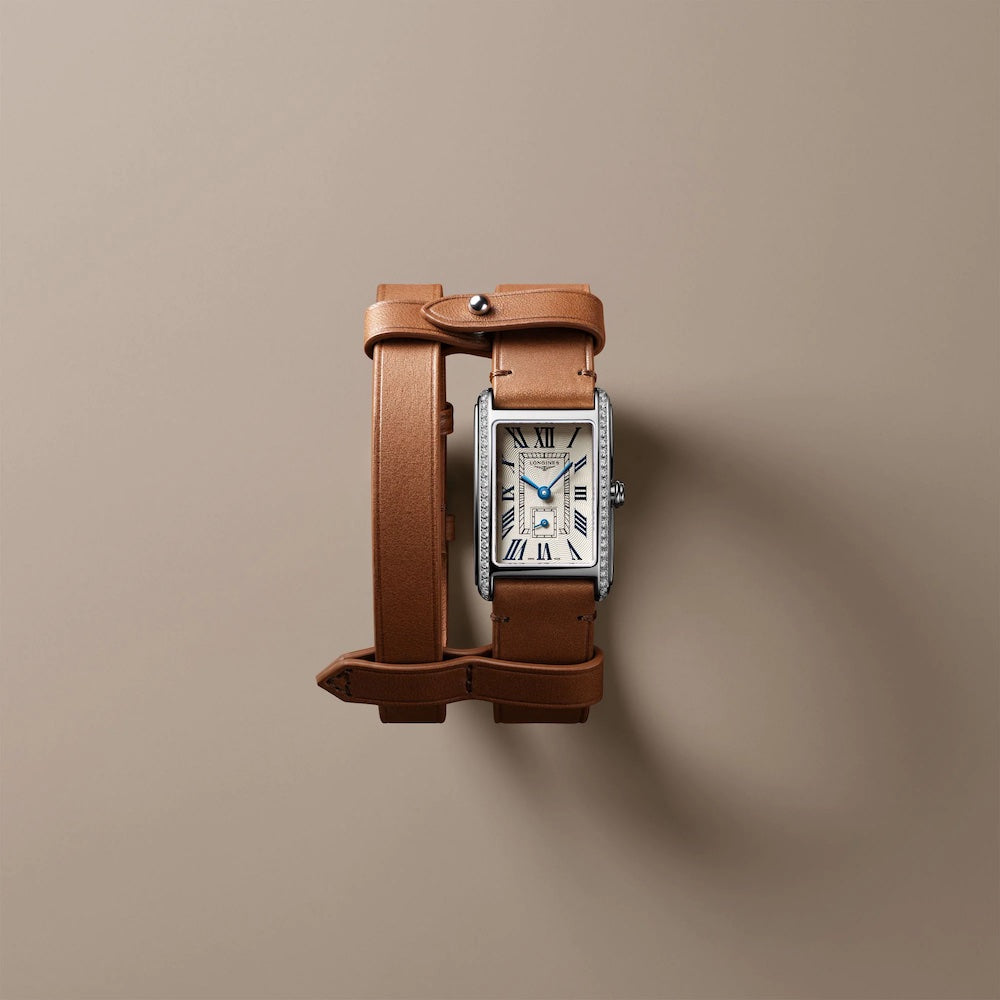 Longines Watch DolceVita X YVY Ladies L5.255.0.71.B. The Longines DolceVita redefined by its double leather straps. The watch brand with the winged hourglass has revisited the models in its famous rectangular collection and created the new Longines DolceVita X YVY line. Its leather straps are the creation of Swiss designer Yvonne Reichmuth, founder of the company YVY.