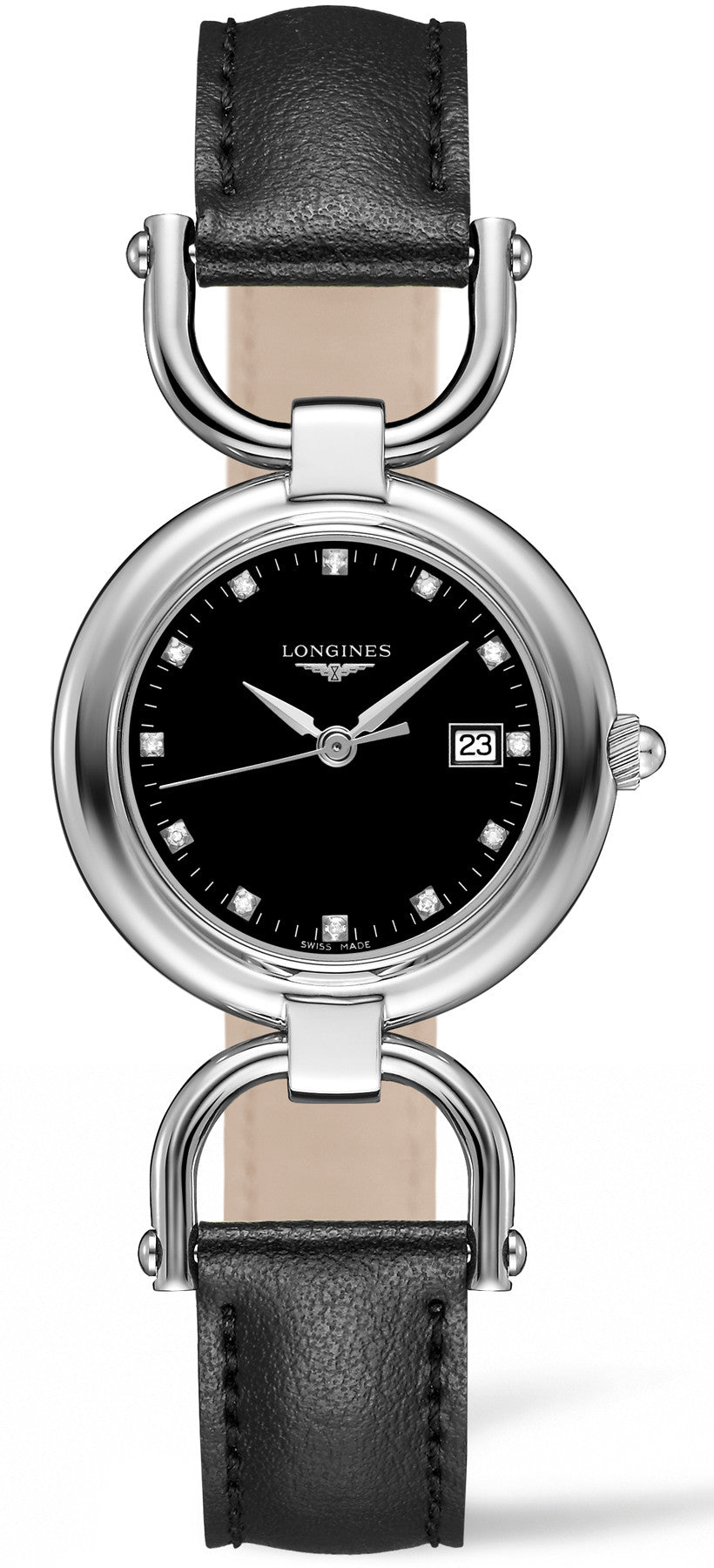 For over a century, Longines have been intertwined with the world of equestrianism and they tribute the sport beautifully with this Longines Equestrian Ladies watch. It’s dazzling dial is adorned with a simple matte black backdrop and decorated with 12 Top Wesselton diamond indices, sleek steel hands and a date window at 3 o’ clock. Powering each of the functions is a Swiss quartz movement, one of the most accurate and reliable movements on the market. The calibre provides hour, minute and seconds hands and a handy End of Life indicator. For one final touch of security and to help assist in its water resistance of 30 metres, this Longines watch for women is protected by scratch resistant sapphire crystal glass that has been coated with several layers of anti-reflective treatment on the underside and a closed case back.