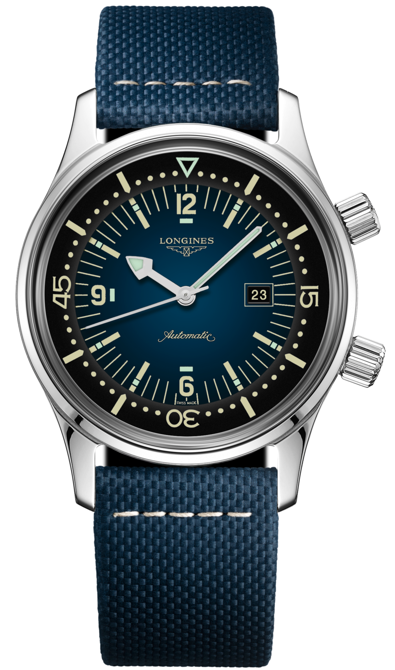 Longines Watch Legend Diver L3.374.4.90.2. A reinterpretation of a 1960s diver watch, The Longines Legend Diver occupies a special place in the brand’s Heritage segment. Symbolic of the rich heritage of Longines, this range has gradually expanded over the years. All models retain the spirit and clean lines of the original timepiece, while being equipped with up-to-date technical features. Contemporary yet steeped in history, it will beyond a doubt play its own part in the story of a legendary watch that’s a well-known, well-loved collector’s piece.