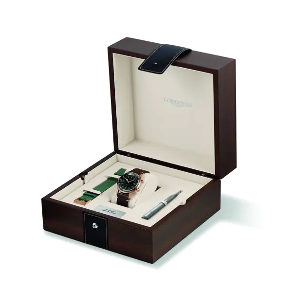 Watch collectors both experienced and new will always find themselves entranced by the Longines Heritage Diver Legend Bronze watch. It’s vintage inspired aesthetic honours one of the Swiss watch manufacturer’s most iconic and historic pieces, the Longines 7042 dive watch from 1960. Perfectly paying homage to the classic, it’s wonderfully detailed dial and retro brown leather strap tribute the pioneering spirit of the brand while its modern-day cutting edge movement ensures it provides only the best in precision, reliability and power.