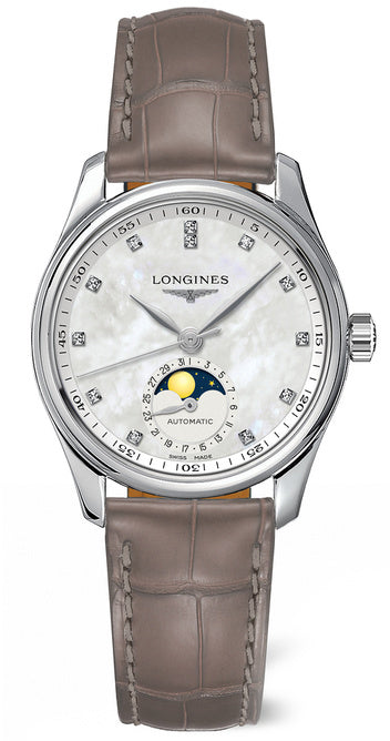 The refined and charming aesthetic of this Longines Master Collection Ladies watch can only be matched by the femininity and elegance of its wearer. Its beautiful appearance, which is made up of a smooth stainless steel case and taupe brown alligator leather strap, combines the luxury watch brands’ iconic watchmaking legacy that has become the perfect illustration of their corporate ethos. Their dedication to traditional horology is also captured within the Swiss made automatic winding movement at its core.