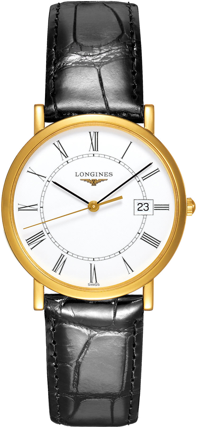 The Longines Presence watch collection with its classic elegance and understated lines will charm men and women alike who are searching for a luxury watch that delightfully straddles the line between a trustworthy timepiece and an elegant piece of jewellery. With this ladies Longines Presence watch, its sophistication is enhanced by a simple aesthetic delivered in 18 carat yellow gold and black alligator leather.