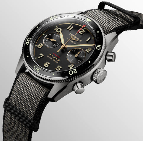 Longines Watch Spirit Flyback Titanium L3.821.1.53.2. Historically, Longines has accompanied legendary pioneers as they conquer air, land and sea. Today, the winged hourglass brand has drawn inspiration from this heritage to create Longines Spirit, a collection with an impeccable pedigree.