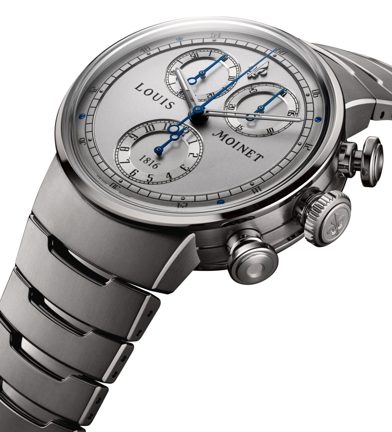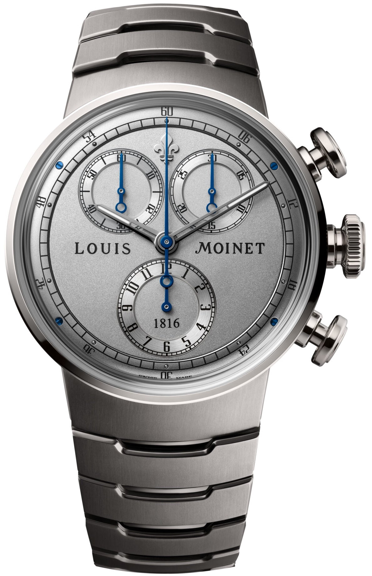 Louis Moinet 1816 Chronograph Titanium Watch LM-150.20.60. 1816 was one of the major turning points in watchmaking history. It is the year in which the great watchmaker Louis Moinet completed the world's first chronograph.