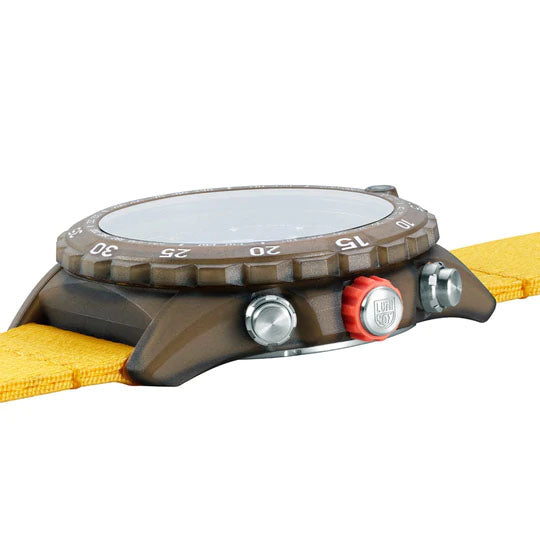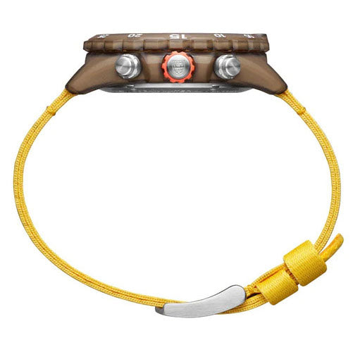 Luminox Watch Bear Grylls Master #TIDE 3740 Series Yellow Black XB.3745.ECO. #TIDE ocean materials are made from 100% ocean-bound plastic, developed in partnership with Swiss scientists. On five islands in the Andaman Sea off the coast of Thailand, local fishermen are being trained and paid to gather and sort plastic waste.