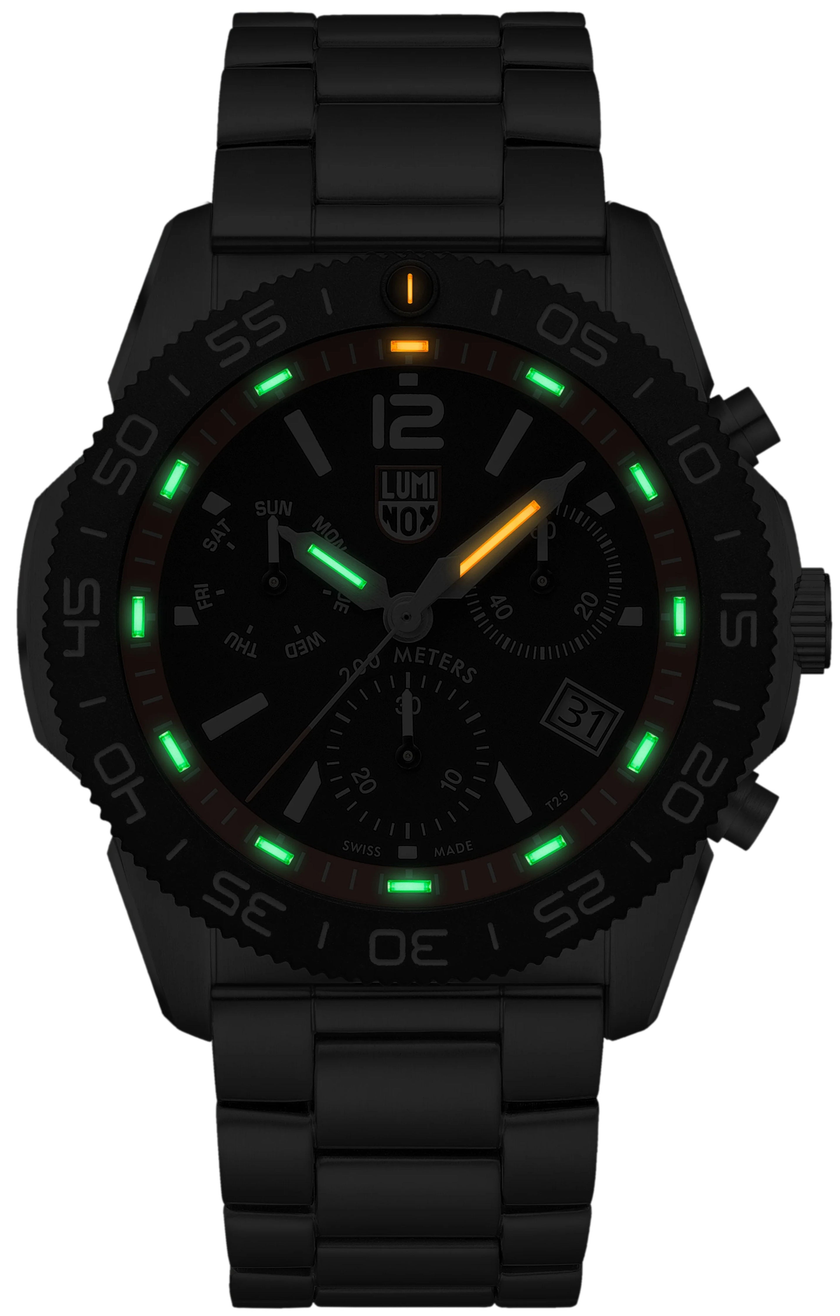 Luminox Watch Pacific Diver Chronograph 44mm 3140 Series XS.3149.M. This appealing casual watch for outdoor explorer remains true to the brand DNA while combining a stainless steel case together with a CARBONOX bezel, resulting in an eye-catching fusion of materials.