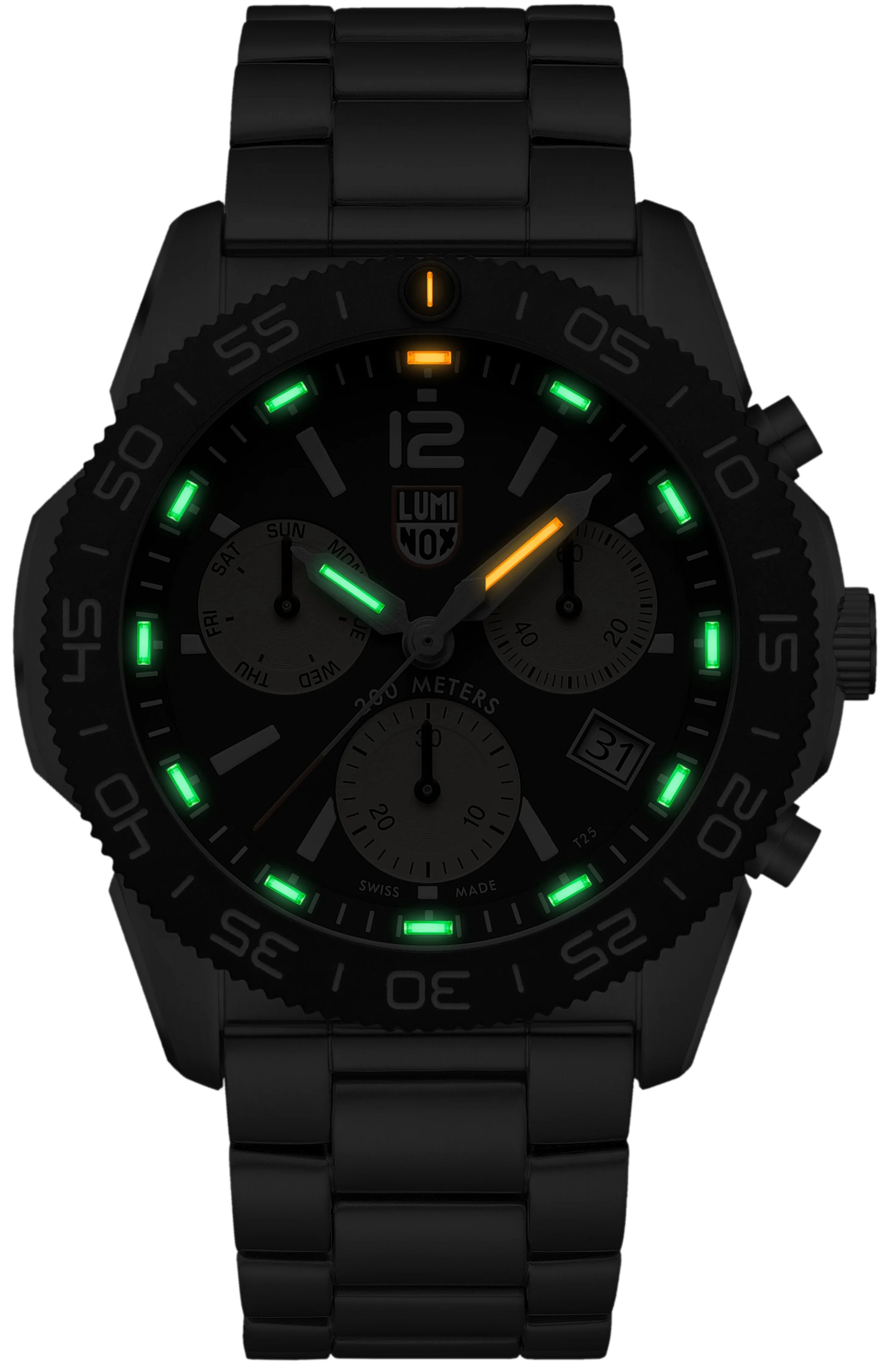 Luminox Watch Pacific Diver Chronograph 44mm 3140 Series XS.3150.M. This appealing casual watch for outdoor explorer remains true to the brand DNA while combining a stainless steel case together with a CARBONOX bezel, resulting in an eye-catching fusion of materials.