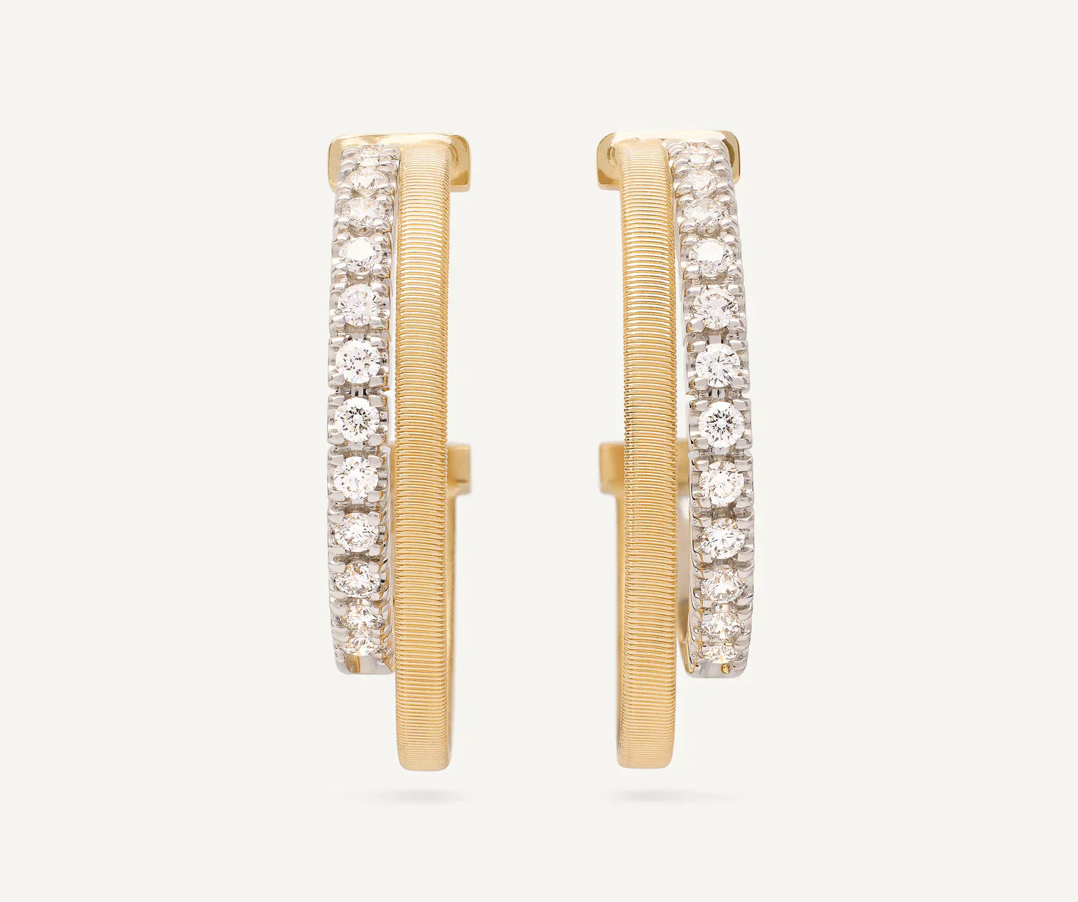 Hand-crafted in 18K yellow gold, these hoop earrings are carefully created with the exclusive coil technique. The flat coil hoop is embellished by a side hoop of brilliant-cut diamonds. Perfect for adding a touch of light to any outfit.