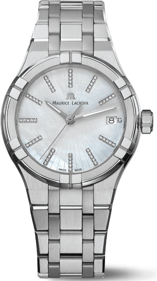 Maurice Lacroix Watch Aikon Quartz Date AI1106-SS002-170-1. Inspired by the iconic Calypso of the 90s, the AIKON has become an icon in its own right. The design language embraces bold, urban-styling and masterfully plays with contrasts. Like all of our watches, the AIKON unites Swiss craftsmanship and high perceived value.