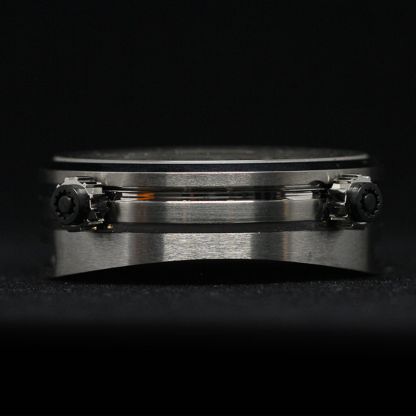 The strap is attached directly to the case without lugs through a special insert and can be equipped either with pin buckle or deployment clasp.