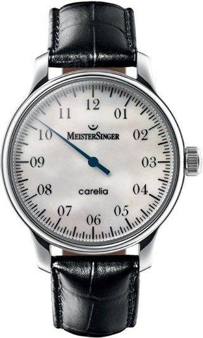 Carelia watches by MeisterSinger are slimmer, more delicate and suitable for the style-conscious lady. The collection is part of the brand's single-handed line of timepieces. One hand marks both the hour and minutes. This is possible because the dial is divided into 144 marks, each representing an interval of five minutes. Carelia watches come with Peseux 7001 hand-wound movement. Additional features include a 42-hour power reserve, scratch-resistant mineral crystal glass and a transparent case back.