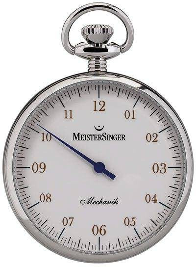MeisterSinger Watch Mechanik. The Mechanik collection consists of elegant and stylish pocket watches. Just like the MeisterSinger No.01 watches, Mechanik pieces come with a single hand that marks both the hours and the minutes. The dial is divided into 144 marks and each represents an interval of five minutes. This system makes it very easy for the wearer to know the exact time. This is a limited edition pocket watch. Its movement is Unitas 6497. Additional features include scratch-resistant mineral crystal glass, plexiglass display and a watch chain.