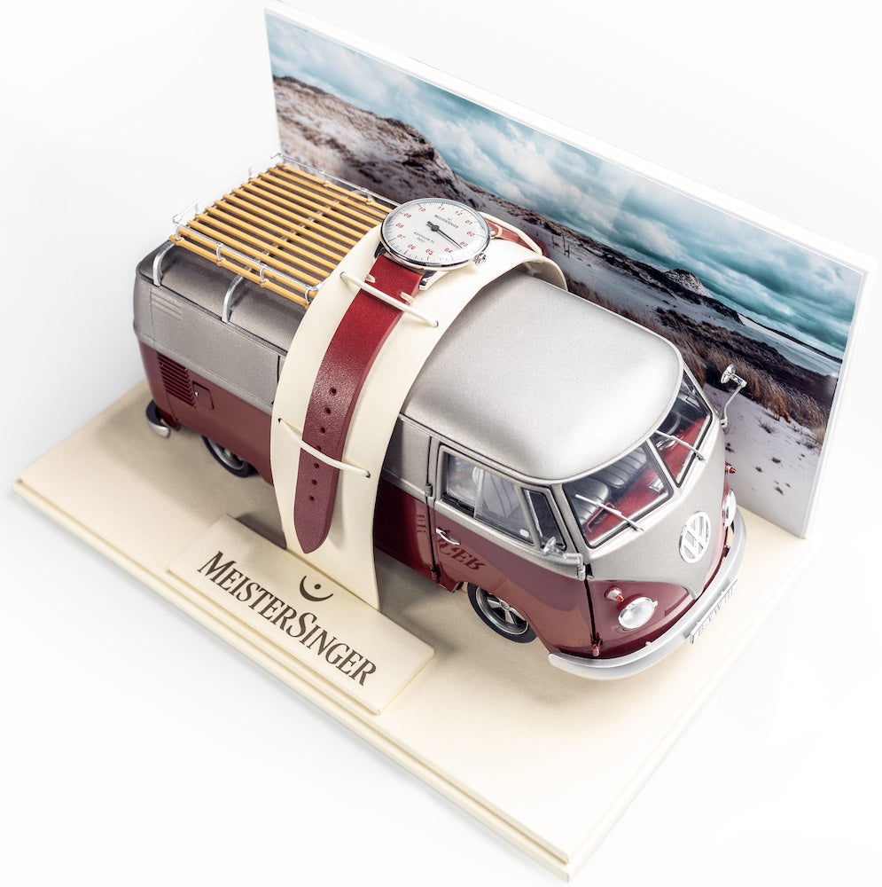 MeisterSinger Watch Edition Neo T1 Limited Edition ED-NES-T1. Just like the legendary T1 van, which has been reinterpreted and “tuned up in this version as a low-rider restomod, the Edition Neo T1 is also a tribute to the classic design of days gone by, combining it with contemporary watchmaking technology and modern features. For the first time, MeisterSinger is equipping the popular Neo model with scratch-resistant sapphire crystal glass, replacing the hard acrylic glass that was commonly used at the time. The Edition Neo T1 marks the beginning of a Neo upgrade that will later be integrated in MeisterSinger’s series watches.