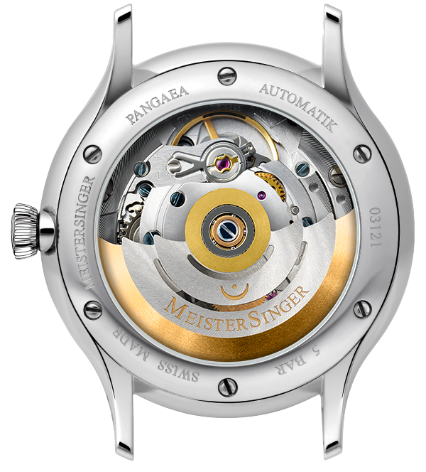 MeisterSinger Watch Pangaea Day Date 365 PDD365927_SVSL018. Like the very first mechanical clocks, MeisterSinger watches display the time with just one single hand, literally summing up the entire experience by pointing to that one precious moment and thus conveying a reassuring sense of time. Superb design and outstanding Swiss watchmaking precision are combined to create watches that won’t go out of style and may well be an inspiration for generations to come.