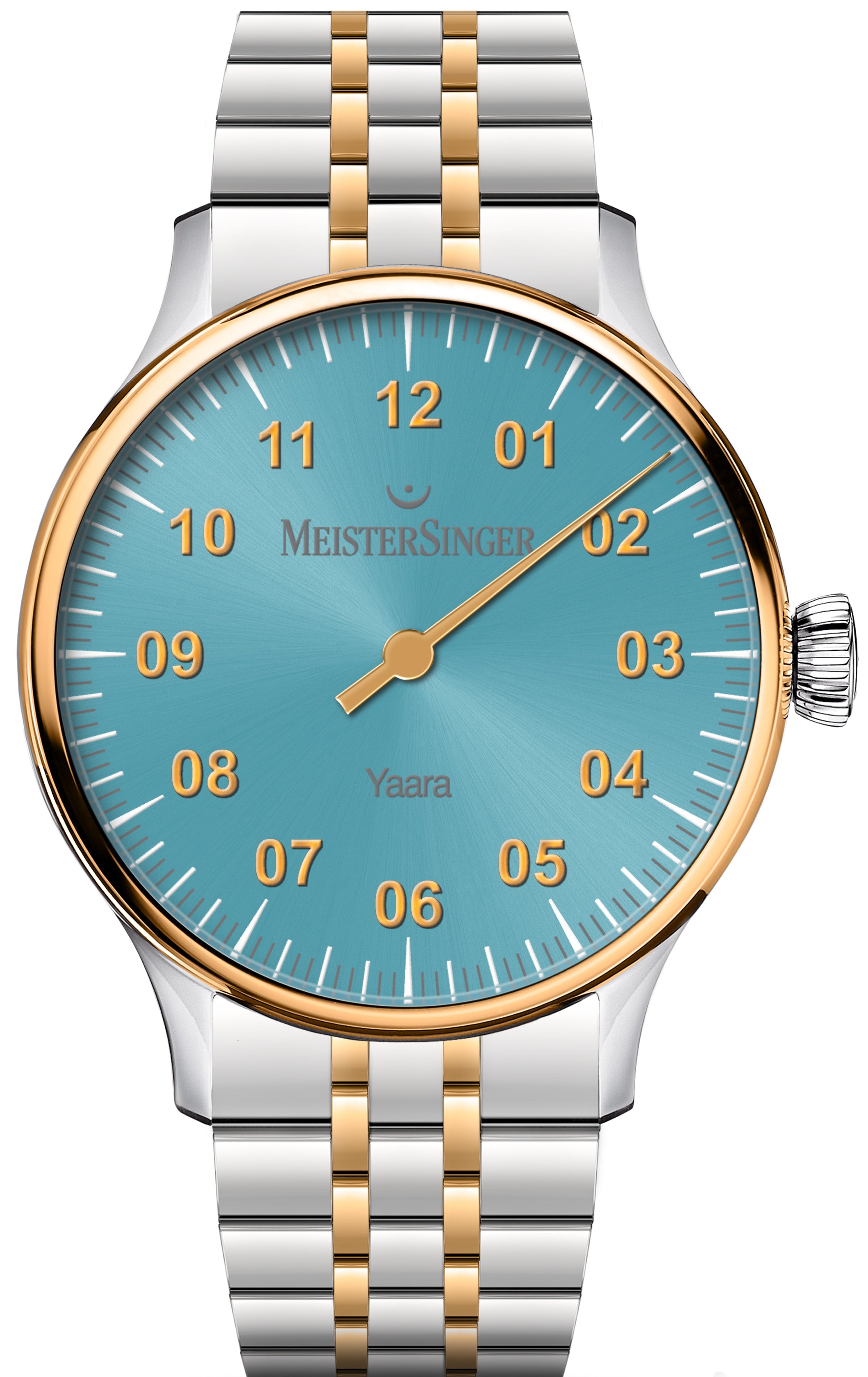 MeisterSinger Watch Yaara Ice Blue Gold YA914G. Anyone who has worn a single hand watch for two or three days knows it enables you to experience time in a different way. The rapidly passing seconds and minutes give way to a single hand that shows the time in the same way as the first mechanical clocks. A MeisterSinger single hand watch literally makes time pass more slowly, and encourages us to be self-determined and conscious with the most precious thing we have, our time.