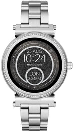 Michael Kors Watch Access Sofie Smartwatch MKT5020. The Michael Kors Access Sofie smartwatch combines modern glamour with next generation technology. Featuring a full round display with new technology for dazzling clarity, its designed in a slim profile with silver tone plating and a luxe pave lined bezel. Functionality from Android Wear 2.0 keeps you connected to your goals and favorite apps, while interchangeable straps and multiple display faces offer endless options to customize and suit your style.