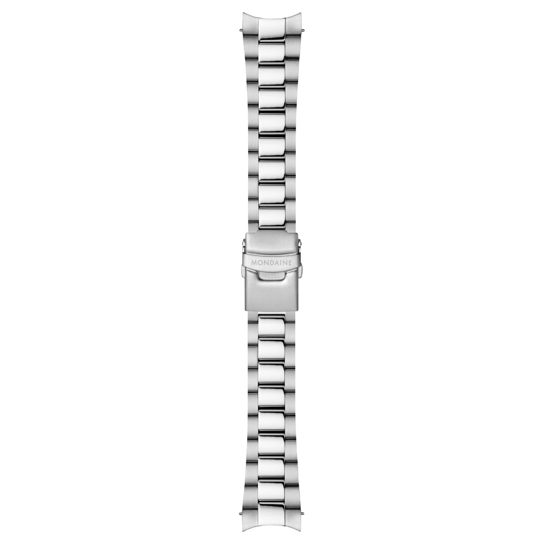 Mondaine Watch Numeri White MSN.4211B.SK. This striking Numeri watch features a 42mm stainless steel case with a distinctive 12-sided fixed bezel. The geometric bezel, marked with numerals, enhances readability while adding a bold design element. Its classic white dial, paired with the iconic red second hand, ensures effortless legibility, further enhanced by anti-reflective sapphire crystal and BackLight technology for optimal visibility in all conditions. The robust case with brushed and polished finishes is paired with a matching dual-finished stainless-steel link bracelet. Water-resistant up to 10 ATM, this Swiss Made watch is built for both urban sophistication and outdoor adventure.