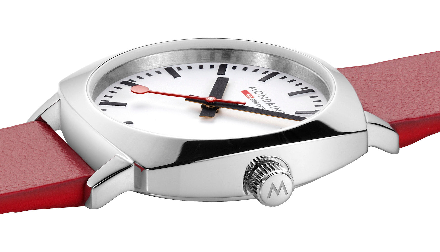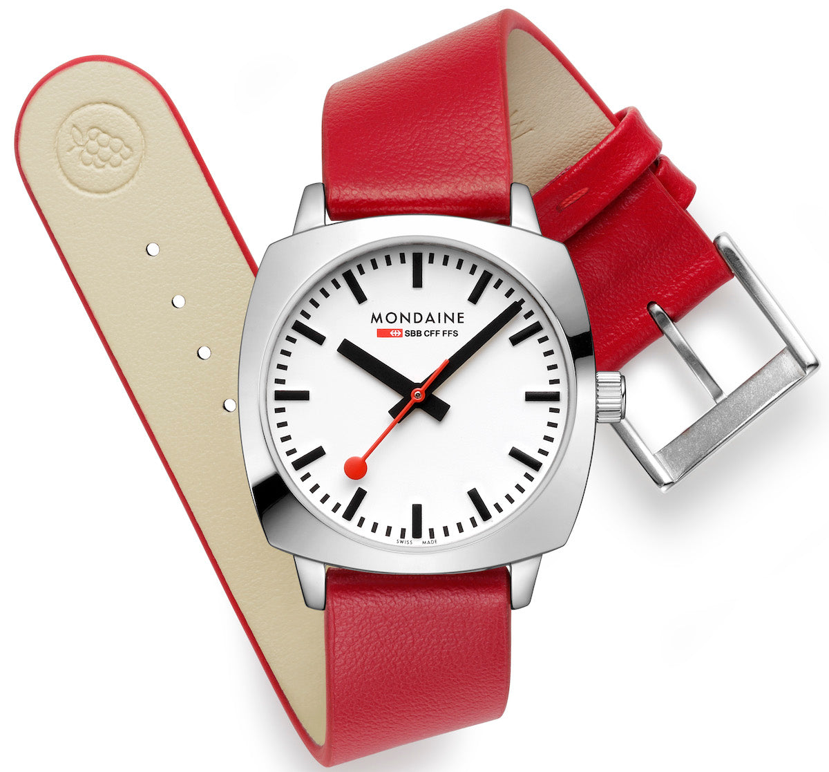 Mondaine Watch Official Swiss Railways Cushion MSL.31110.LCV. Mondaine was inspired by the blueprint of the iconic patented design of the Railways Clock, and turned it into a watch collection, with official license from the Federal Swiss Railways.