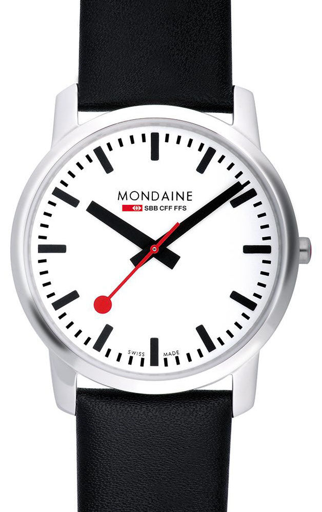 Mondaine Watch Simply Elegant A638.30350.11SBO. The Simply Elegant collection is designed for people who love the Mondaine design, but want something more elegant and dressy, perfect for a day in the office or a night on the town. The Simply Elegant case is quite thin, only 6.2 mm high, and the specially designed lugs of the case allow the watch to adapt to any size wrist so the watch sits comfortably flat.