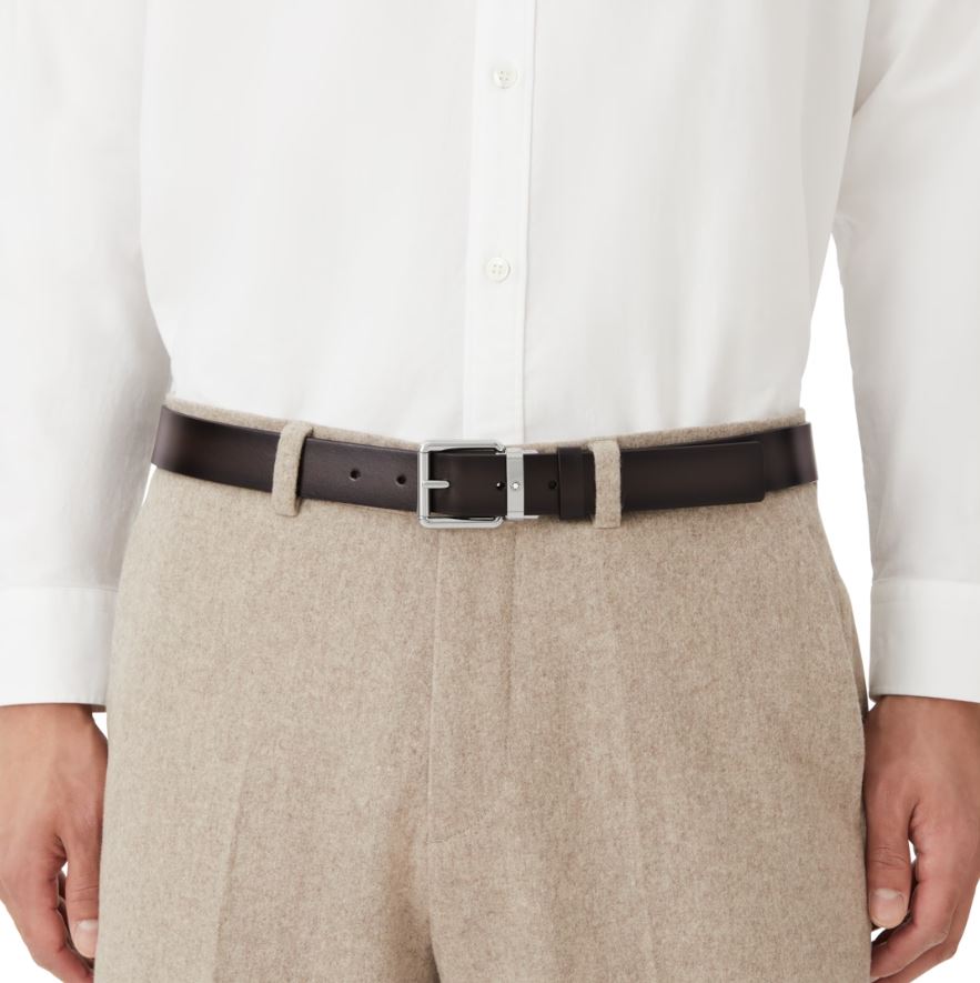 Montblanc 30mm Pin Buckle Vintage Palladium Leather Belt Brown D