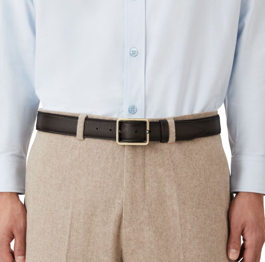 Montblanc 35mm Rectangular Frame Shiny Light Gold Leather Belt Brown 131190