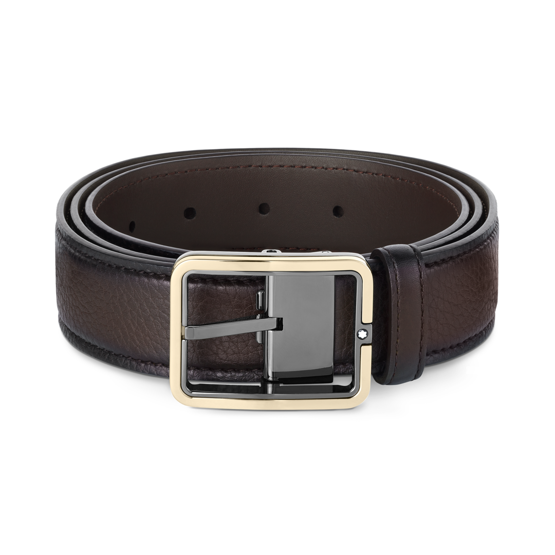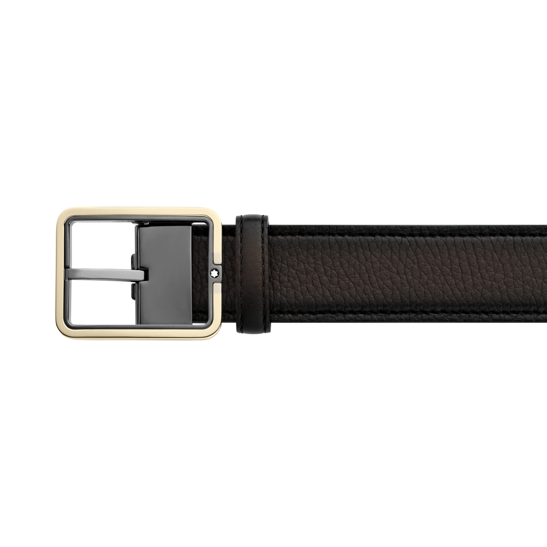 A slick and contemporary buckle accompanies a classic leather band on this belt, with a two-tone effect complemented by the signature Montblanc emblem.