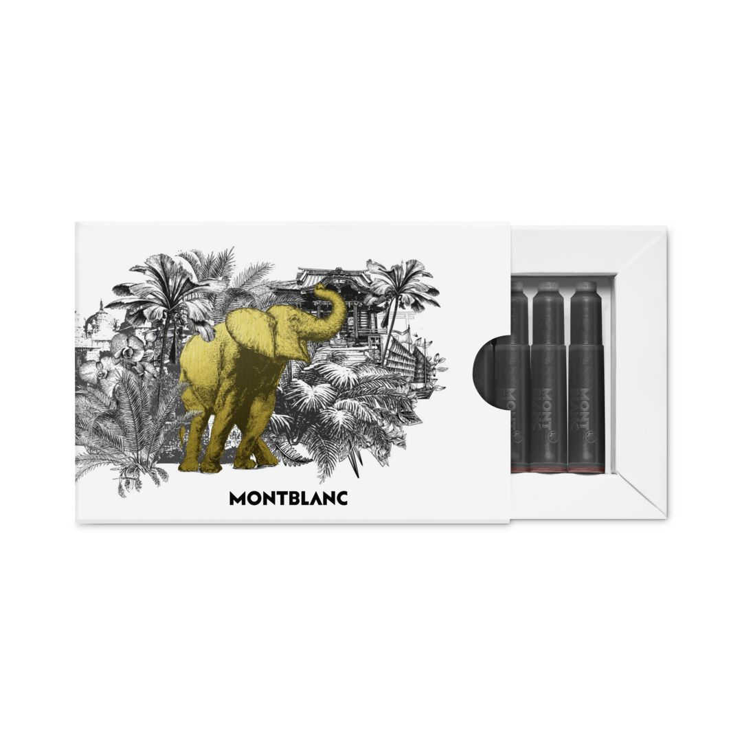 Montblanc ink cartridges, brown, Meisterstuck Around the World in 80 Days. Montblanc Special Edition ink bottles come in square packaging that evokes concepts and themes of each collection, making them valuable collectible gifts for Montblanc enthusiasts. For all Montblanc fountain pens with cartridge system, 8 cartridges per package.