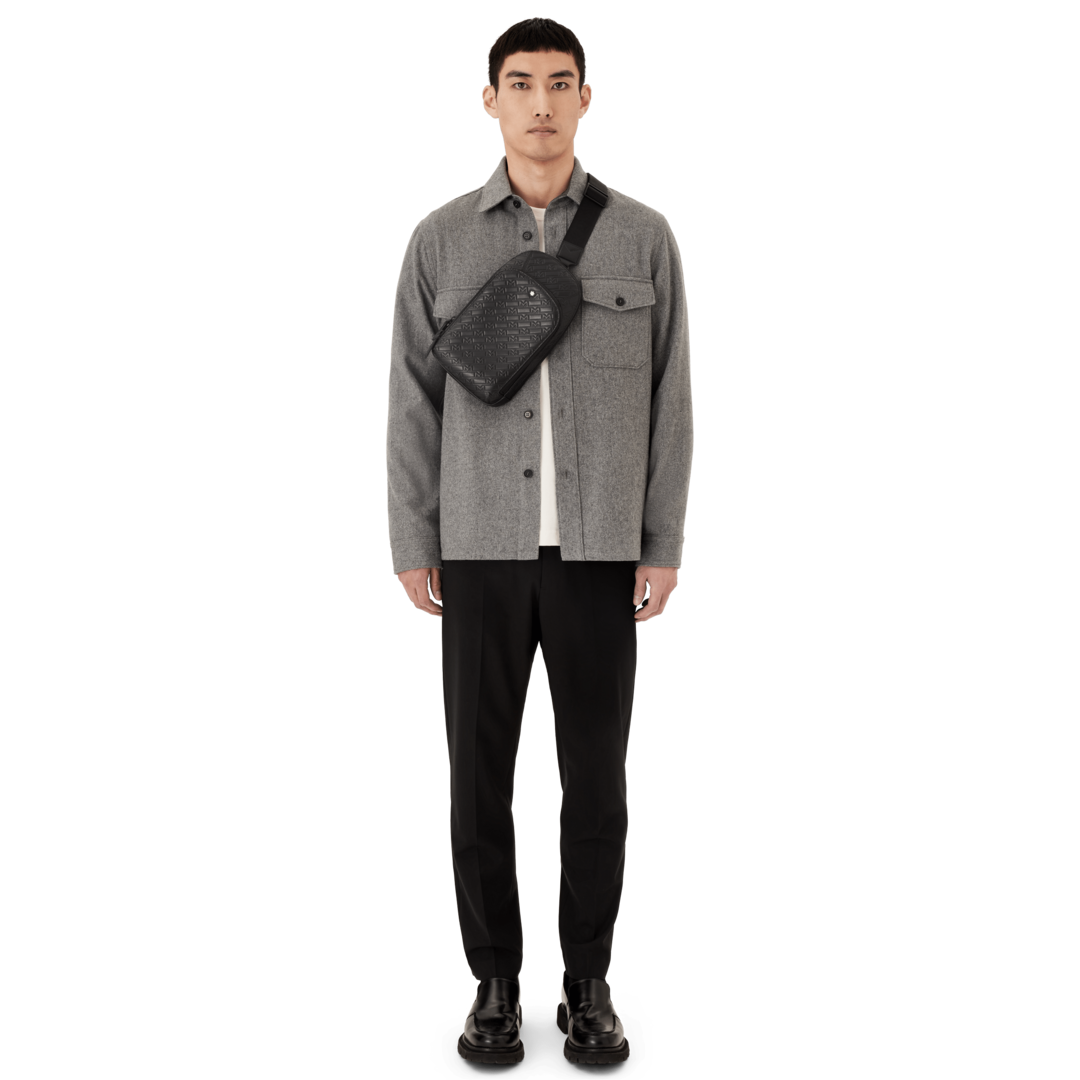 A contemporary accessory for city-dwelling professionals, this sling bag creates a bold signature look. Compact and lightweight, with a matching strap for easy transportation, it’s a versatile bag for life on the go. Designed to hold mobile phones, cards and other small essentials, it features one main compartment and a zipped pocket on the front. Its refined leather texture is patterned with an ‘M’ motif in tribute to Montblanc’s heritage. Dimensions: 170 x 60 x 295 mm.
